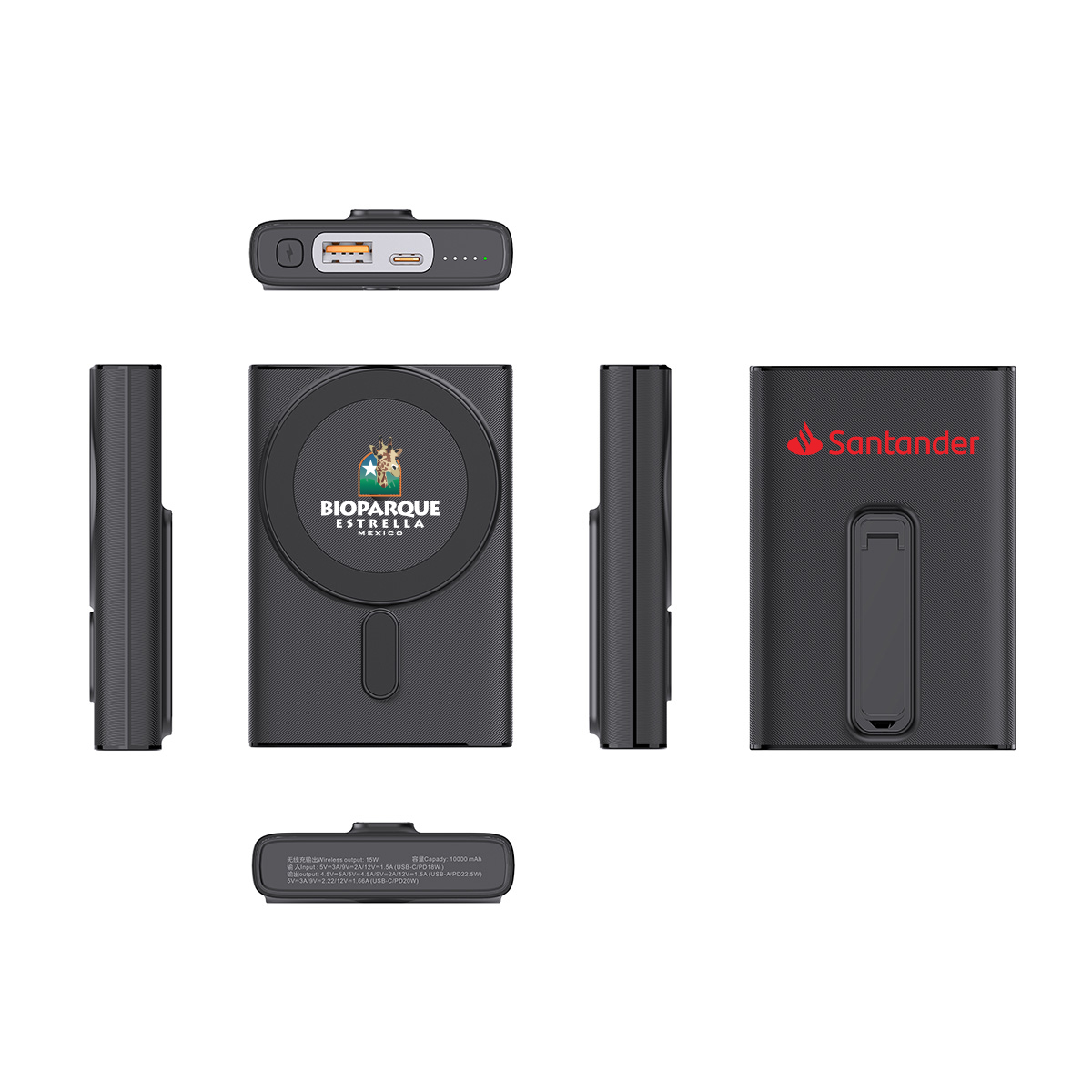 Discover efficiency with our 15W Fast Magnetic Wireless Charger Stand featuring a built-in PD22.5W Power Bank. This versatile device offers a real 10000mAh capacity, Type-C input/output, and USB-A output with fast-charging capabilities. The inclusion of a button and LED indicators ensures easy control and monitoring. Elevate your charging experience with this sleek and powerful wireless charger stand. Material: ABS. Weight: 195g. Accessory: TYPE-C charging cable and English user manual. Certification: CE and Rohs.