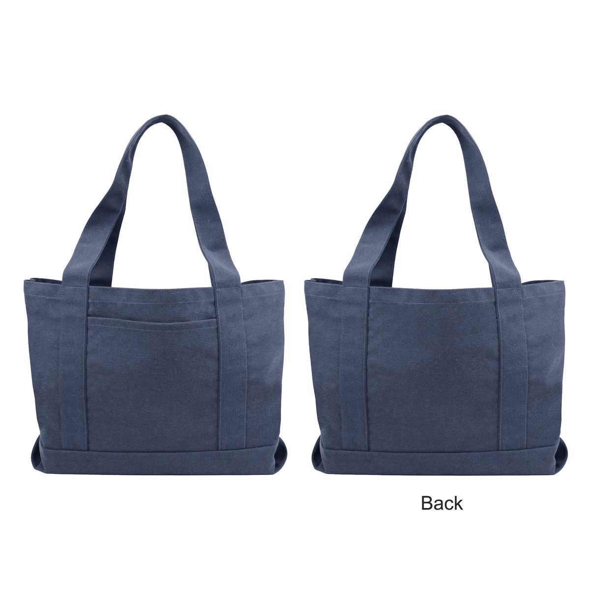 This lightweight yet sturdy 12 oz stonewashed cotton canvas tote features an 18" x 12" main compartment with a reinforced bottom for structured support. The open front pocket allows easy access, and the 24" handles enable comfortable shoulder carrying. Perfect For Beach Getaways, Outdoor Picnics, Daily Commute, Brand Promotion, Retail Gifts, Campus Life.