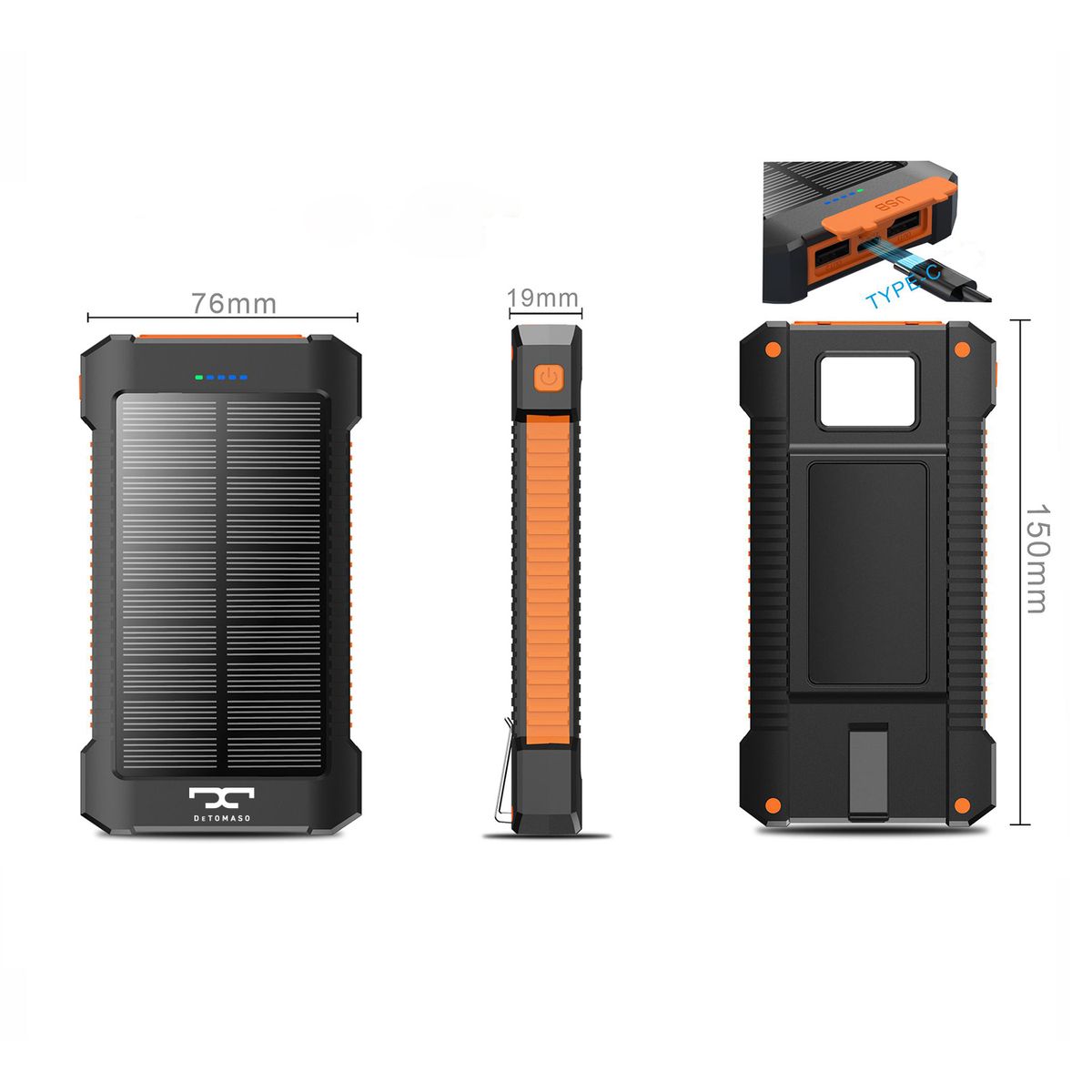 Stay charged on outdoor adventures with the 10,000mAh Solar Power Bank. With dual USB ports, solar panel, and rugged design, it keeps your devices powered on the go. Water-resistant and fall-proof, it's perfect for hiking, camping, or emergencies. Compact and lightweight with a multi-mode flashlight for safety. Customizable for branding. Weight: 225g. Certification: CE, FCC, ROHS. Input: Type C port: DC 5V/2A Max Output: USB-A1 port: DC 5V/2A Max USB-A2 port: DC 5V/2A Max Type C port: DC 5V/2A Max.