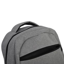 Modern laptop backpack made from GRS-certified 300D Oxford fabric. Features a padded compartment for laptops up to 15.6", along with a small front pocket and two padded mesh side pockets for added storage. Lightweight and durable with a contemporary melange gray design and black trims. Ideal for work, school, and travel. Customizable with your logo.