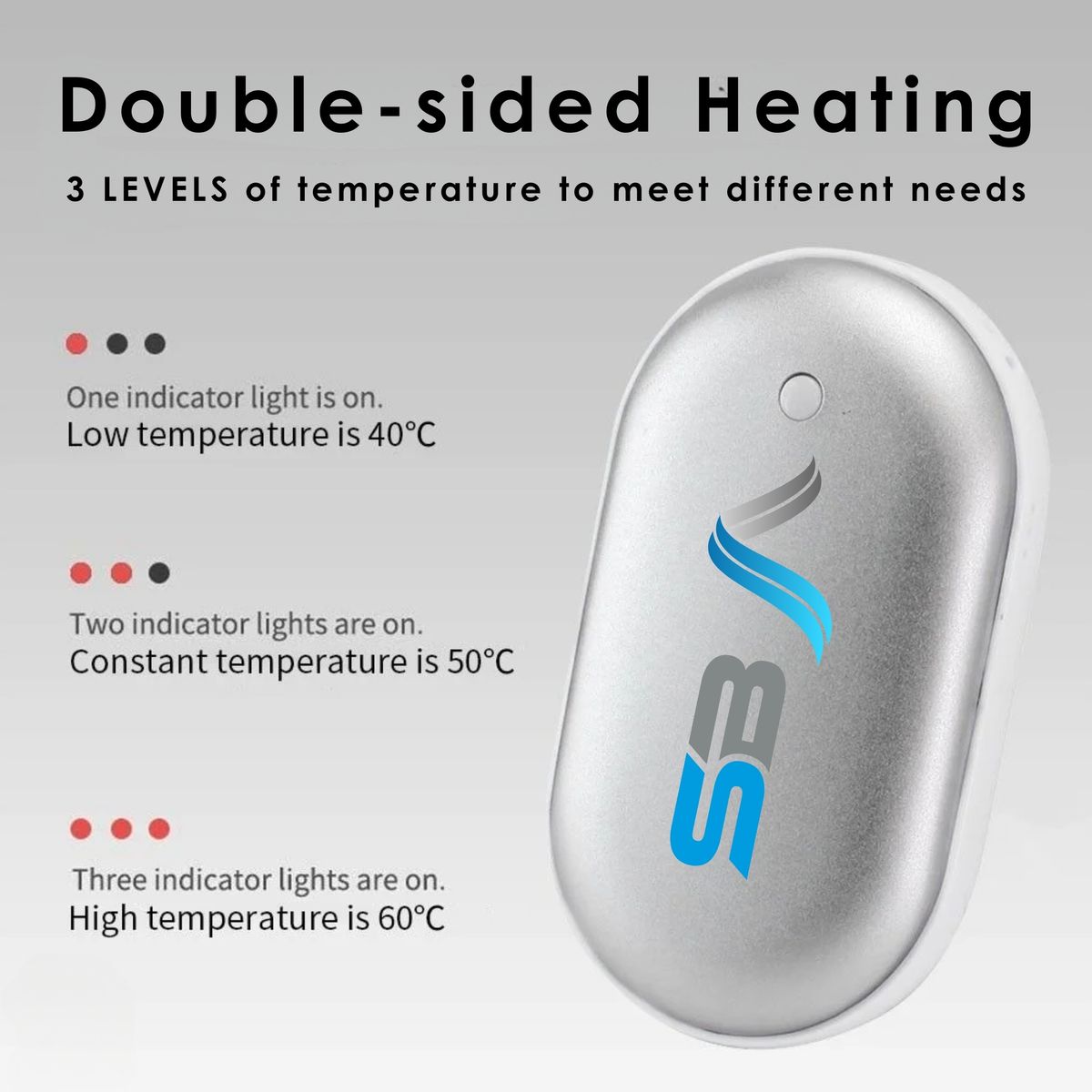 Stay warm and stylish with this portable hand warmer. Featuring a compact design and a 5200mAh rechargeable battery, this device provides consistent heat for up to 6 hours while doubling as a power bank for your mobile devices. Crafted with a smooth, pebble-like finish, it's perfect for outdoor activities, cold office spaces, or travel. Customizable for your brand, it's an excellent choice for promotional giveaways or personal use.